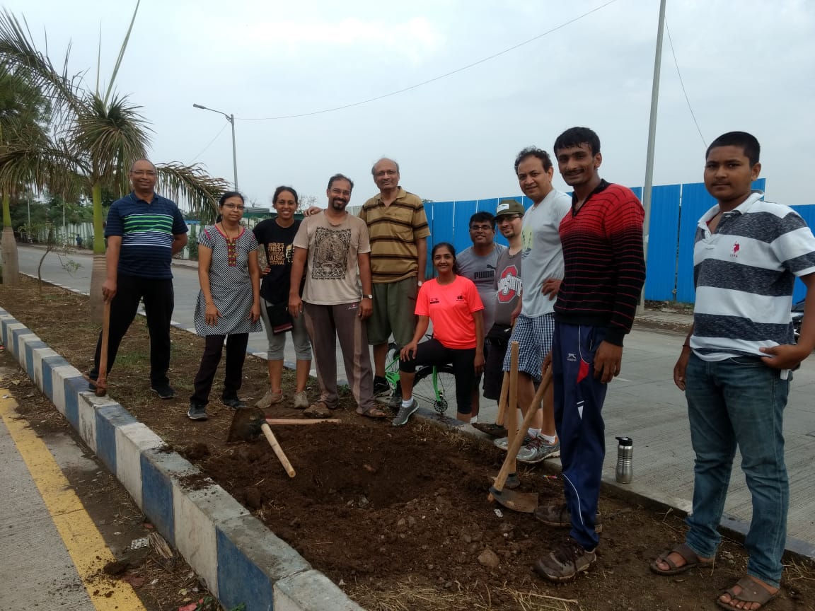 In 2018, as part of some new scheme of development, the then Corporator decided to cut down our street tree at the entrance of the street. This team of residents who had planted over 200 trees on this road now, got together and decided to fight this out. We met the Corporator in person, requested him to not cut down and in-turn gave him the option of- ‘we building a man-made island around this tree’. A tree-guard + island was formed using old tyres which were painted with fluorescent colours and tied around the tree. The objective of safety of humans as well as safety of our street tree were both fulfilled. It was a very satisfying deed that we all did together.